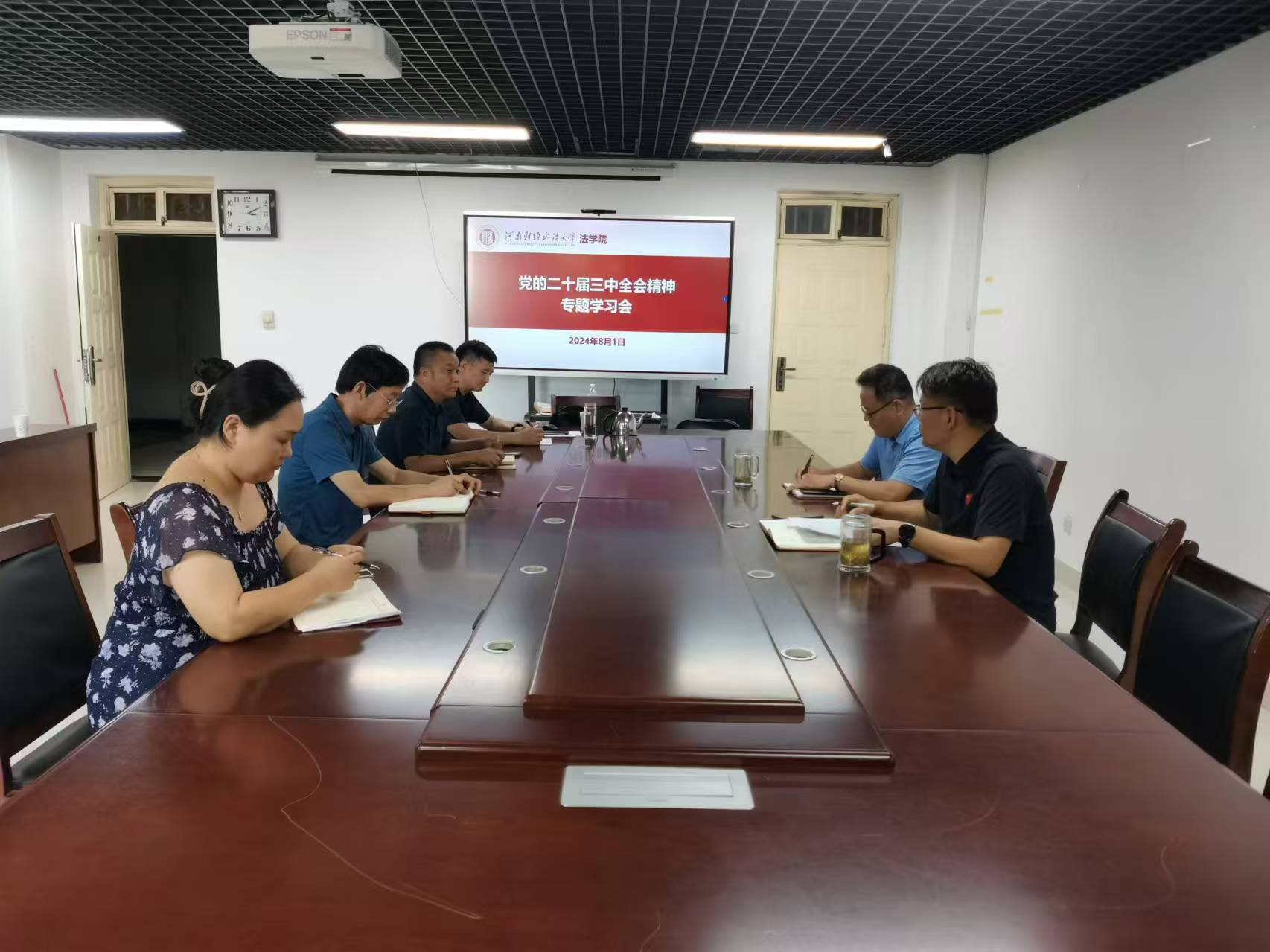 在党的二十届三中全会精神专题学习会上,郭书山领学了《中国共产党第二十届中央委员会第三次全体会议公报》和校党委书记、校长司林胜在校党委理论学习中心组开展的专题学习党的二十届三中全会精神学习会上的讲话精神。冉富强院长重点就学习《中共中央关于进一步全面深化改革、推进中国式现代化的决定》、习近平总书记关于《中共中央关于进一步全面深化改革 推进中国式现代化的决定》的说明在学习会上作了交流发言。其他与会班子成员在深入学习、交流的基础上,结合工作实际,分别从大部制和完全学分制改革、学科建设“攀峰”计划、人才培养及学科发展体系、有组织科研等方面做了汇报发言。