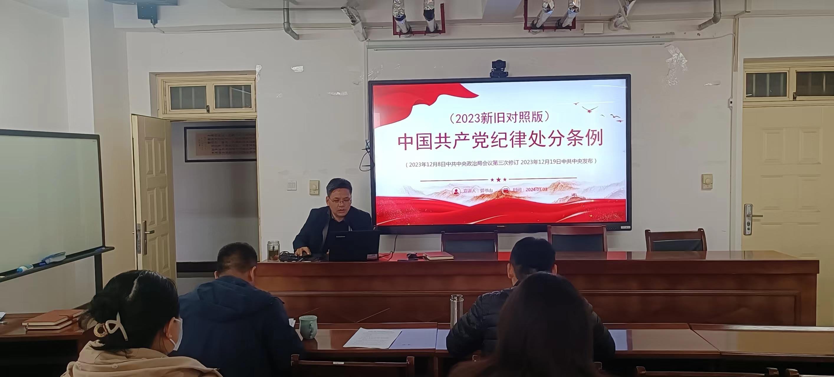 会议传达学习了学校基层党建主要文件精神并集体学习了修正后的《中国共产党纪律处分条例》,会议要求,全体同志要在思想上、政治上、行动上同以习近平同志为核心的党中央保持高度一致,在党的旗帜下团结成“一块坚硬的钢铁”,心往一处想、劲往一处使,并在日常学习和工作中,抓早抓小,防微杜渐。
