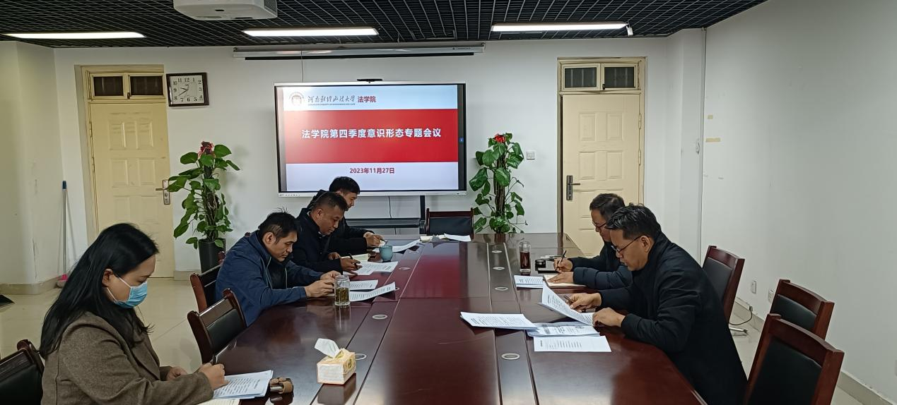 会上,郭书山对第四季度意识形态工作整体情况进行了分析研判。郭书山指出,本季度意识形态工作水平整体上不断提升:一是理论学习方面,完善学习机制,推动学习制度化规范化;聚焦核心问题,引领学习向深向实;强化督促检查,巩固学习成果。二是宣传效果方面,针对不同受众群体,实行多层次、多渠道宣传;通过举办学术会议、访企拓岗、工会文体活动、校友论坛等活动,弘扬立德树人主旋律,让意识形态宣传活起来,实起来,动起来;坚守民主法治底线,对错误思潮和言论敢于举旗亮剑;抓住关键少数,树立先进典型,用榜样力量激发教职工干事创业热情。三是明确工作重心,聚焦精准发力。以申博攻坚为契机,以学科治理体系综合改革为抓手,以学部制改革为主线,以课程团队打造和有组织科研为重点,深化整合法学学科优势,增强学科的核心竞争力。