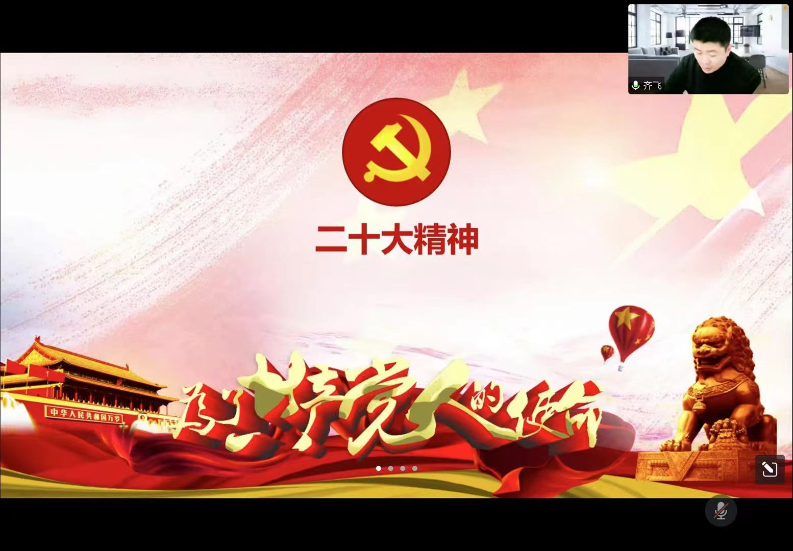弘扬党的二十大精神,勇担青春使命。齐飞老师提出,青年强则国家强。当代中国青年生逢其时,施展才干的舞台无比广阔,实现梦想的前景无比光明。学生党员不仅要理解党的二十大精神,还要时刻践行党的二十大精神,充分发挥学生党员学在前、走在前的先锋模范作用,发扬为人民、为同学服务的精神。树立终身学习的观念,通过不断学习来适应社会,提升自身素养,与支部共进步。
