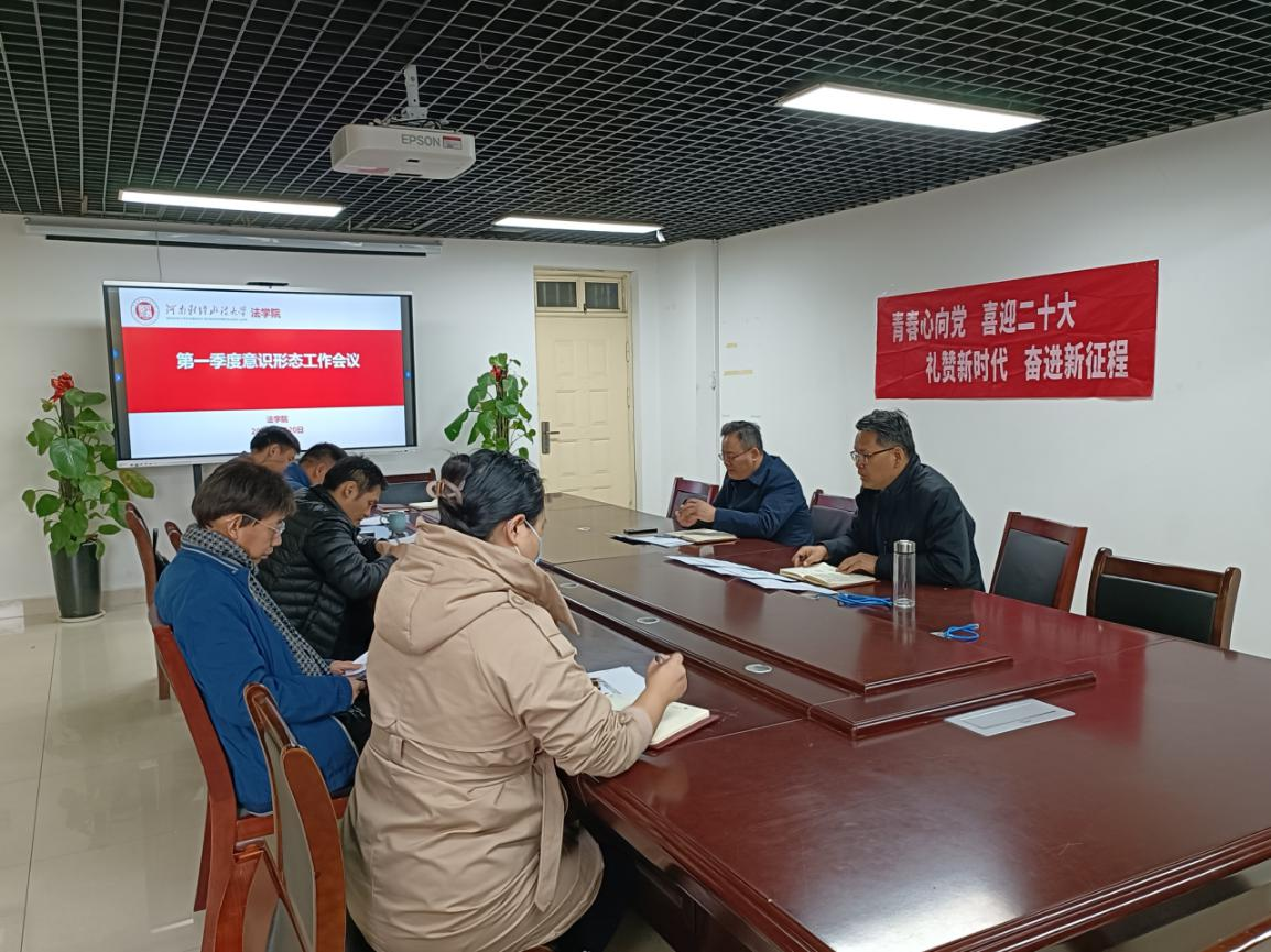 会议对william威廉中文第一季度意识形态工作进行了分析研判。第一季度,william威廉中文从严格落实“第一议题”制度,加强意识形态网络阵地建设和发挥党建引领作用,推动党建与业务深度融合三个方面着力加强意识形态工作的开展,对当前william威廉中文在课堂教学、学生管理、网络舆情、师德师风、学术交流、公文流转程序等方面存在的意识形态风险隐患点进行了梳理,在下一阶段的工作中,要从规范课程课件、加强警示教育、健全网络信息风险防范预案管理、完善师德师风考评、严格执行学术活动审批、健全公文流转规定等方面加强规范化建设。