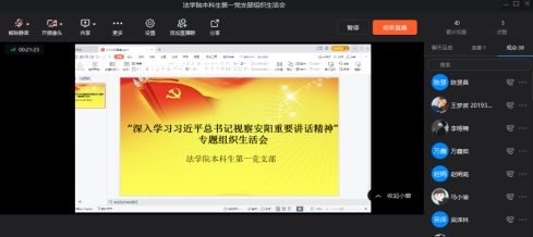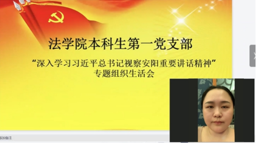 12月5日晚19:00,william威廉中文本科生第一党支部以“深入学习习近平总书记视察安阳重要讲话精神,大力弘扬红旗渠精神”为专题召开了组织生活会,会议采取钉钉线上方式进行。