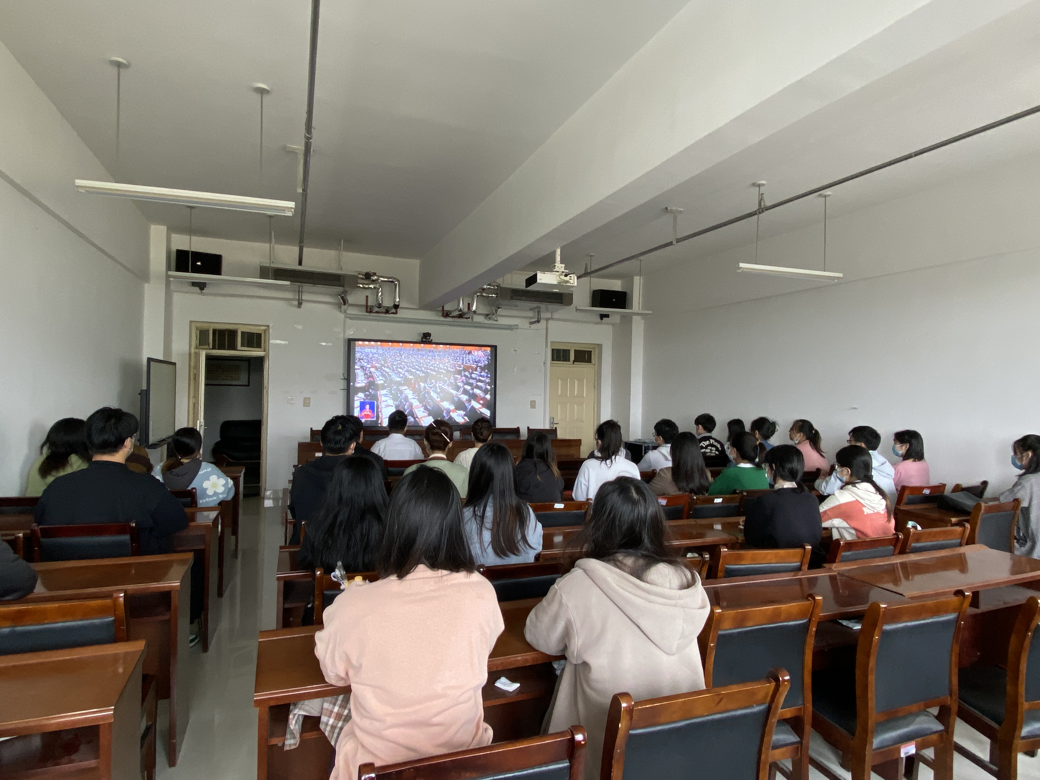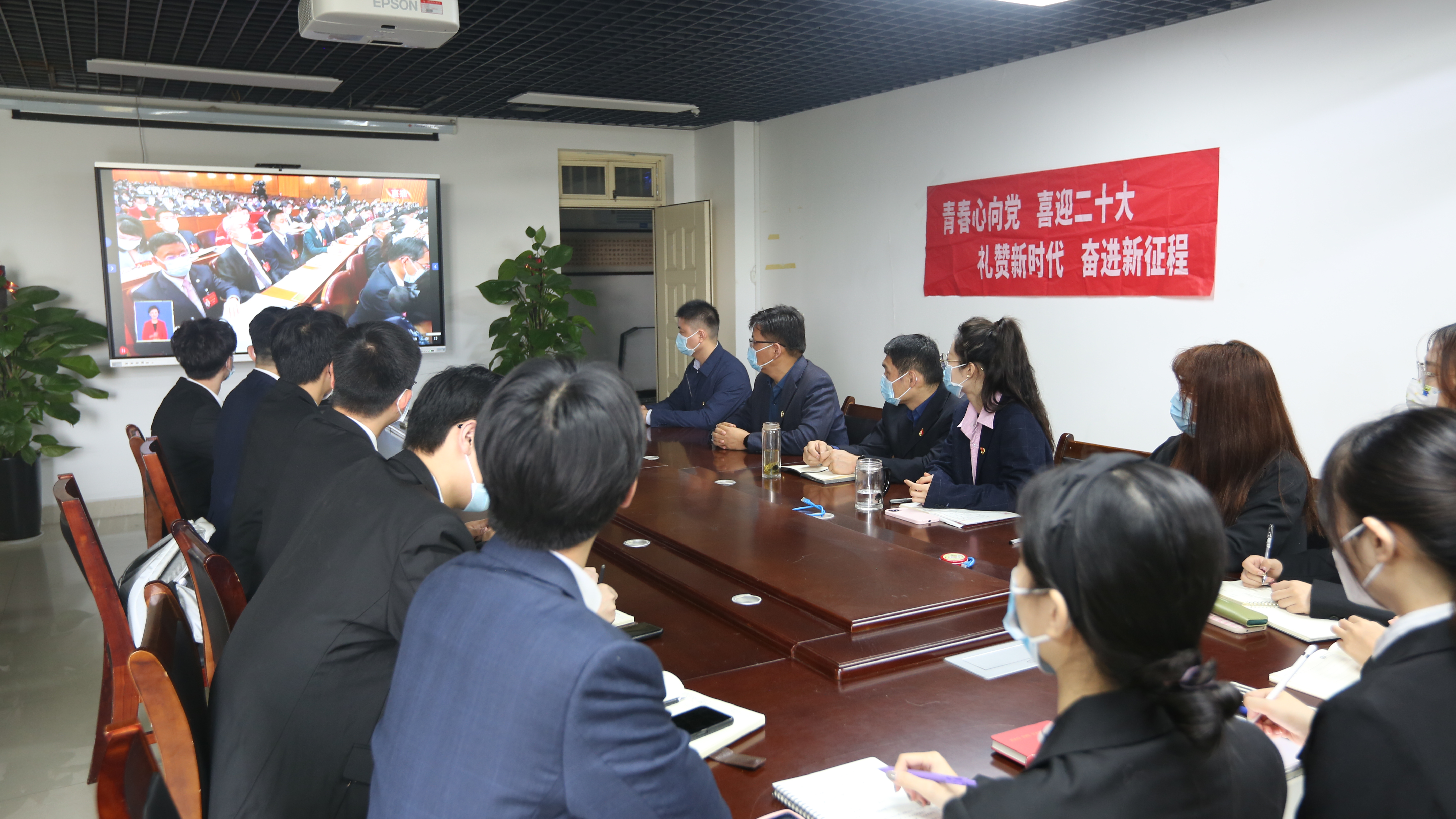 10月16日,william威廉中文组织全体师生通过线上线下结合的形式收看了党的二十大开幕会直播盛况。william威廉中文党委书记郭书山、副书记焦永刚、党政办公室主任齐飞、团委副书记吕皓洁以及部分学生党员代表在教科楼B座429会议室集中收看二十大开幕会直播,其他师生自行收看二十大开幕会直播。