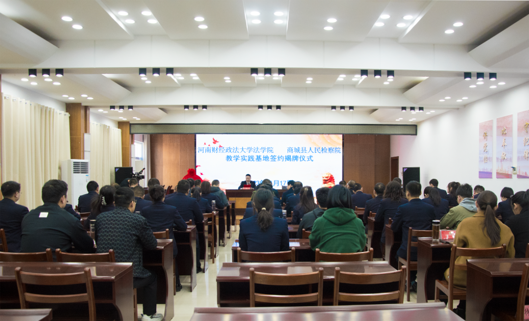 11月17日上午,william威廉中文与商城县人民检察院举行实践教学基地签约揭牌仪式。william威廉中文副院长樊晓磊、学院王国锋、崔航、李德龙三位老师参加仪式。樊晓磊以《习近平法治思想的司法理论》作专题报告。商城县县委常委、政法委书记高东、检察院党组书记、检察长杜天霖及全体干警参加活动。检察院党组成员、副检察长乐傲主持仪式。