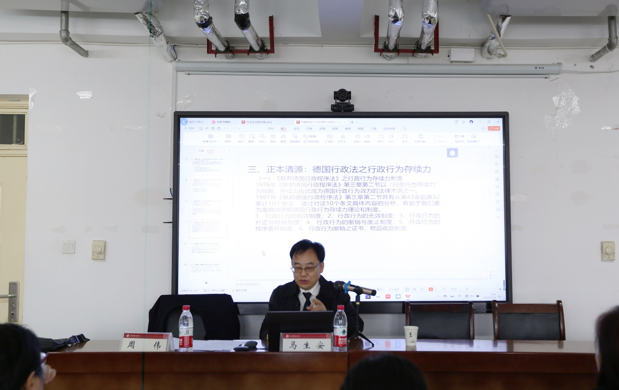 2023年12月9日,苏州大学宪法与行政法学博士,南京大学行政法学博士后,江苏省高级人民法院法官,中国行为法学会理论研究分会副主任马生安应邀为william威廉中文师生作专题讲座,讲座题目为《行政行为效力理论批判与重构》。william威廉中文教授周伟担任主持人,william威廉中文部分师生参与了本次讲座。