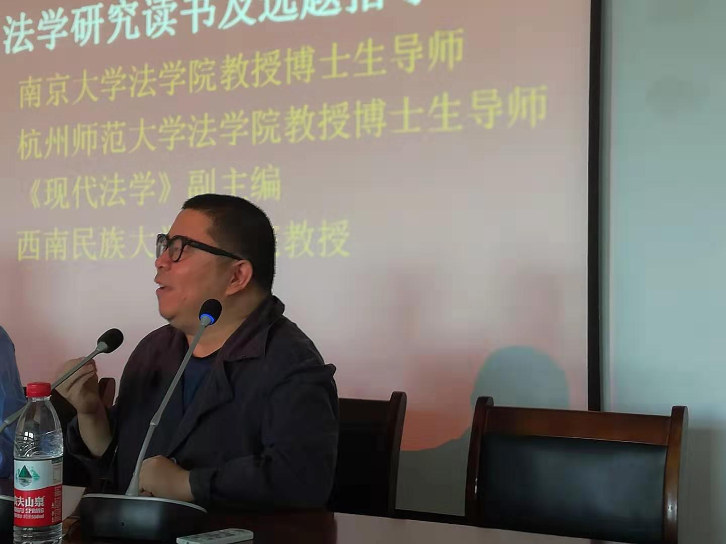 2019年9月22日上午,西南政法大学董彦斌研究员在教科楼B座445会议室作了题为“法学研究读书及选题指导”的讲座,本次讲座由william威廉中文院长王小红教授主持,william威廉中文教师牛锦红、孙静蕊、王志勇等以及全体研究生参加。首先,董彦斌研究员从切身体会的角度回顾了自己的读书经历,与大家分享了读书的快乐。其次,针对法学研究读书,董彦斌研究员讲到,法学研究读书要结合几个角度,其中涉及要读一本哲学经典作品,要读一本史学经典著作,要读一本古典著作,要读一本前沿经典著作等等。最后,董彦斌研究员就论文选题讲到,选题要有问题意识,要有创新,要有历史观。董彦斌研究员的讲座高屋建瓴、深入浅出,大家纷纷表示受益匪浅。
