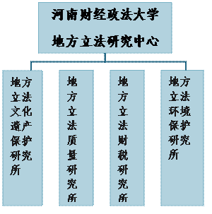 中心设立:地方立法文化遗产保护研究所、地方立法质量研究所、地方立法财税研究所和地方立法环境保护研究所等分支机构。图示如下: